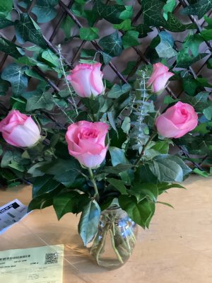 Looks very nice! I would recommend a different background going forward through because it blends a little. And it was 6 pink roses, correct?