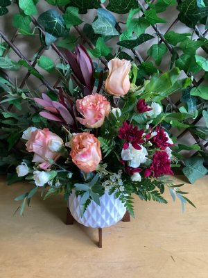 A beautiful fall themed arrangement that warms my my home at a sad moment in my life.
